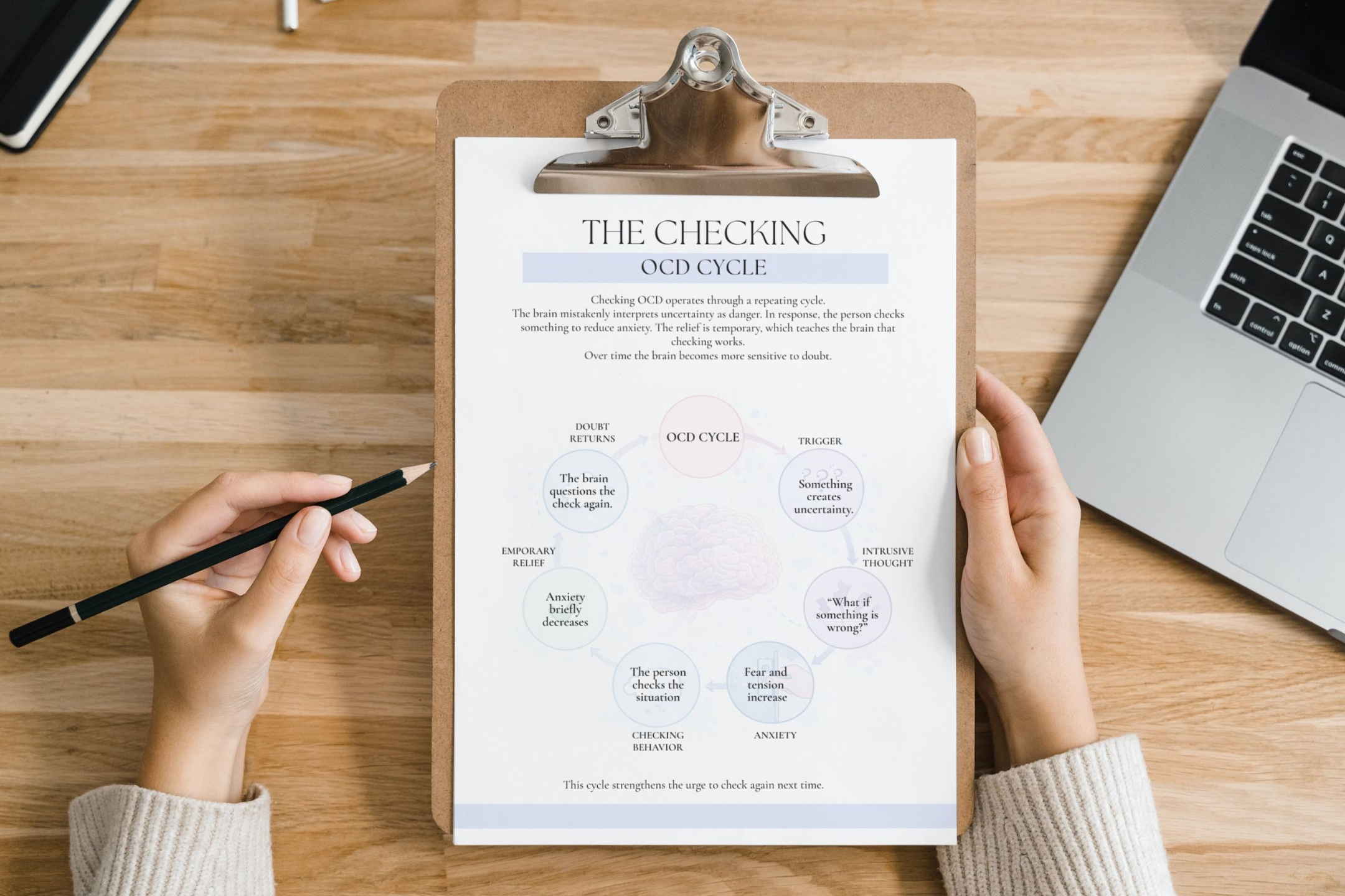 OCD & Intrusive Thoughts Subtype-specific workbooks covering intrusive thoughts, rumination, reassurance seeking, harm OCD, contamination OCD, and more. ERP-informed exercises throughout.